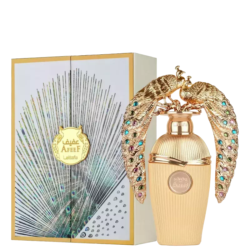 Afeef de Lattafa Perfumes é um perfume Compartilhável. Esta é uma nova fragrância. Afeef foi lançada em 2024. As notas de topo são: Pêssego, Pimenta Rosa e Bergamota. As notas de coração são: Tuberosa, Jasmim e Flor de Laranjeira. As notas de fundo são: Pralinê, Sândalo, Âmbar e Patchouli.